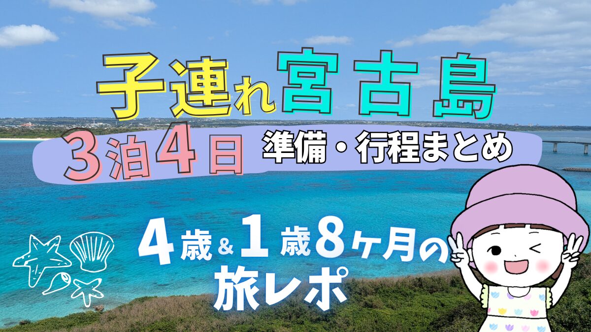 2026年3月下旬、4歳と1歳8ヶ月の子どもと一緒に、3泊4日で宮古島旅行へ。多少の予定変更はありましたが、大きなトラブルもなく、楽しい4日間となりました。